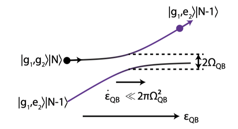 ; no LZ transition is encountered due to adiabaticity. For the evolution