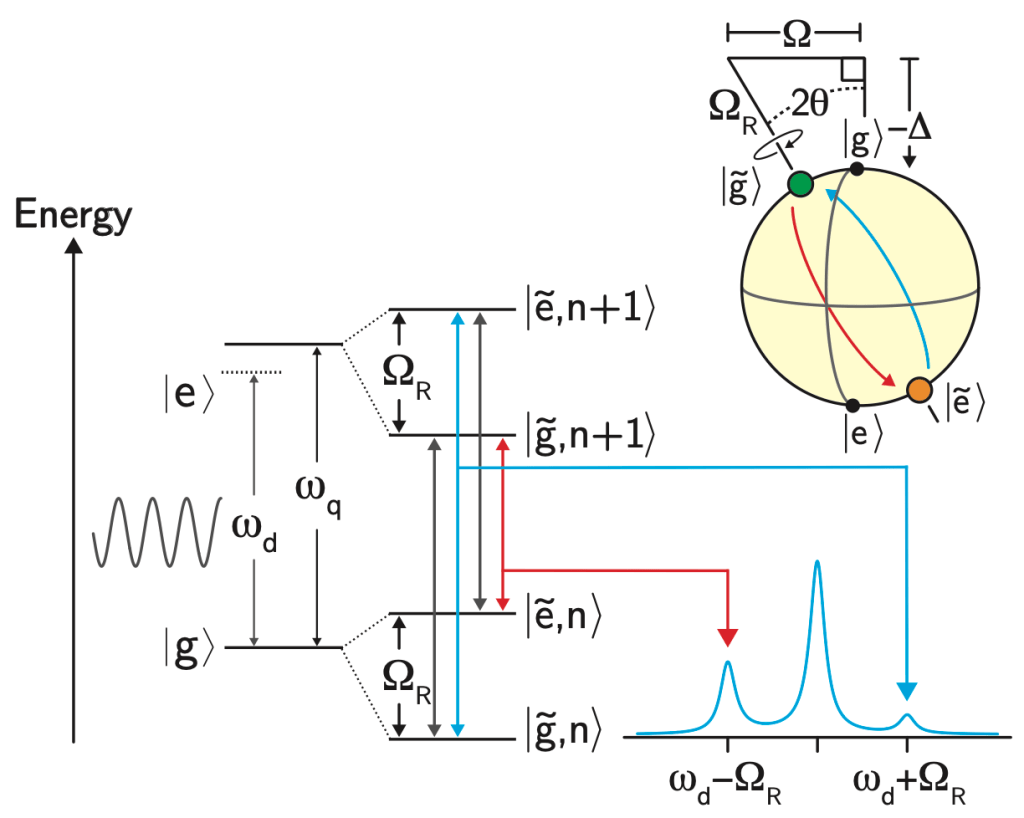 is called the generalized Rabi frequency. This emission spectrum is called the Mollow triplet [2]. See Fig. 3 for a schematic of the Mollow triplet emission.